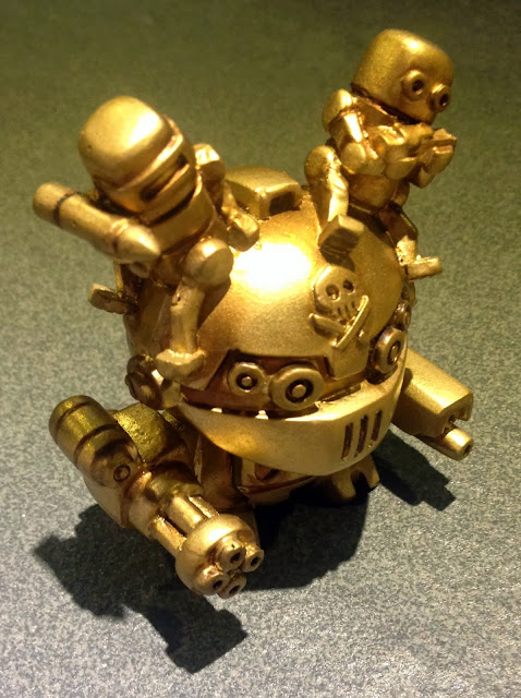 Cast in solid resin, this awesome custom dunny features the heavily armed mech character “Assault” with two support droids titled “Ruff Battery” the rocket soldier and “Tuff Battery” the rifleman.